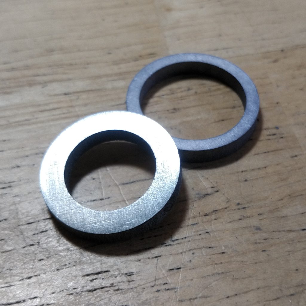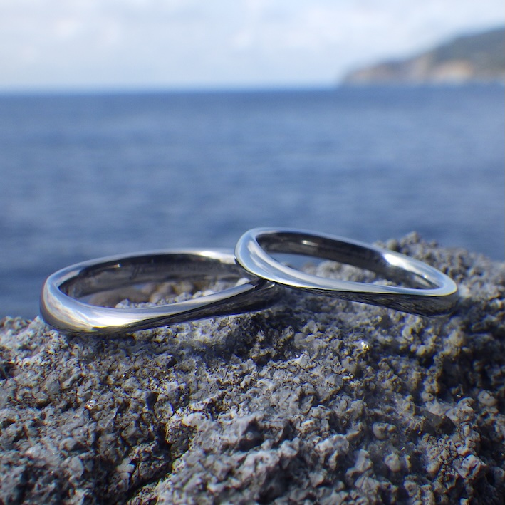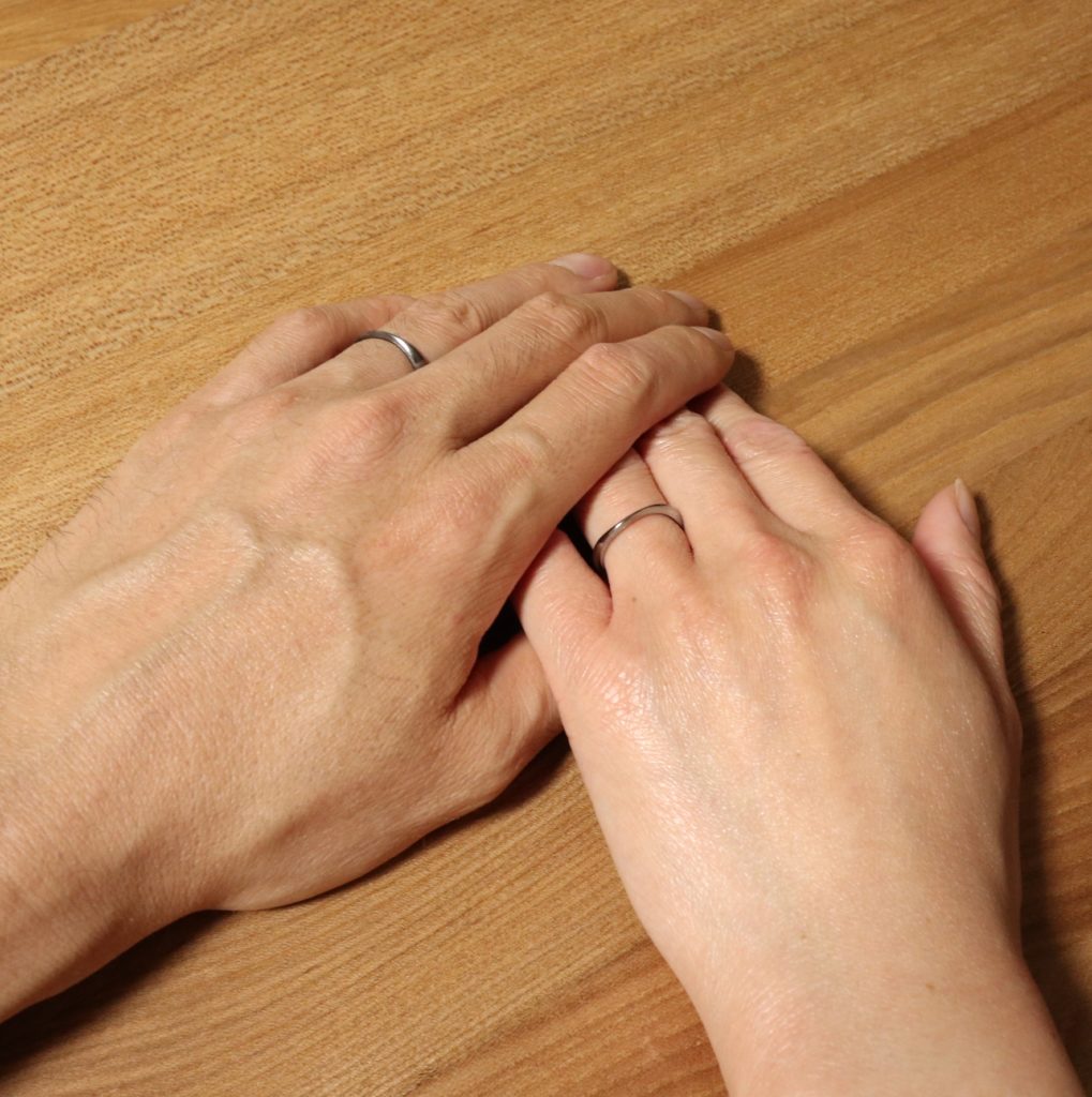 という、お問い合わせをいただきまして、男性リングはタンタル、女性リングはハフニウムでお作りさせていただいた結婚指輪です。