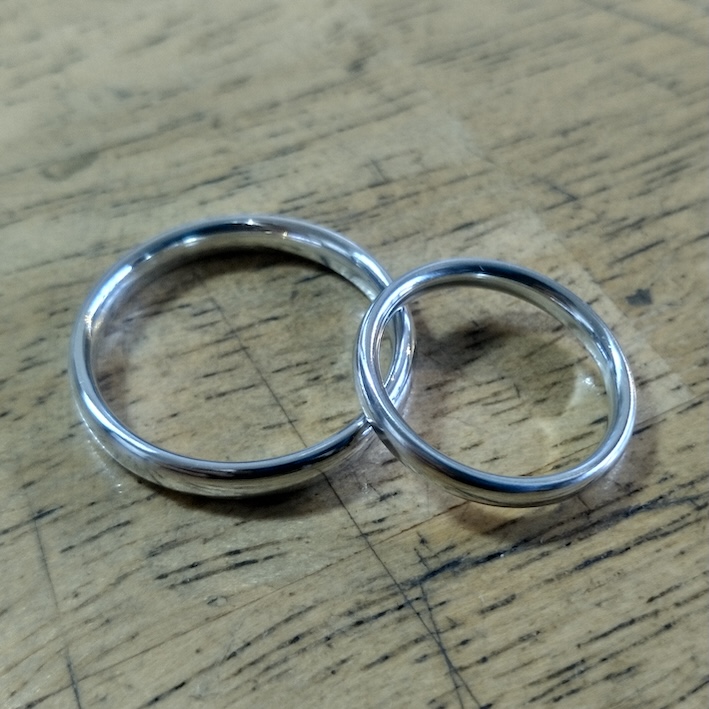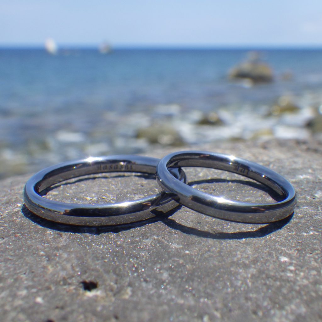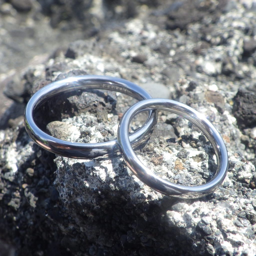 というお電話でのお問い合わせをいただきまして、お打ち合わせにお越しになり、ご注文いただいたタンタルの結婚指輪です。