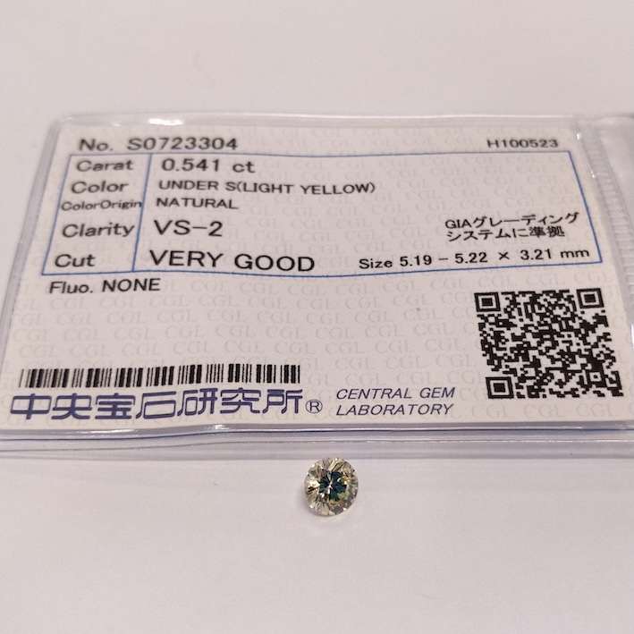 イエローカラーのダイヤモンド(0.541ct・S・VS-2・Very Good)