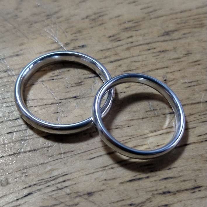 お打ち合わせでご希望いただいたのは、完全に安全性が確保された素材で、あとはシンプルで着け心地の良い結婚指輪をお揃いで。