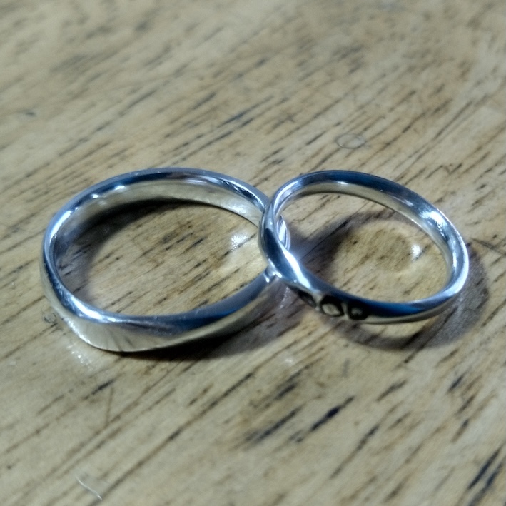 という、お問い合わせをいただきまして、お作りさせていただいたハフニウムの結婚指輪です。