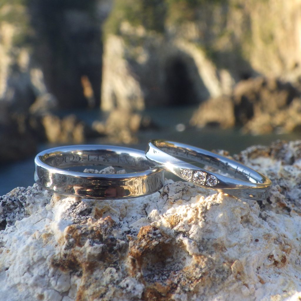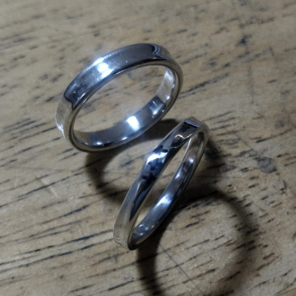 という、お電話でのお問い合わせをいただきまして、お作りさせていただいたハフニウムの結婚指輪です。