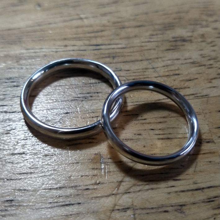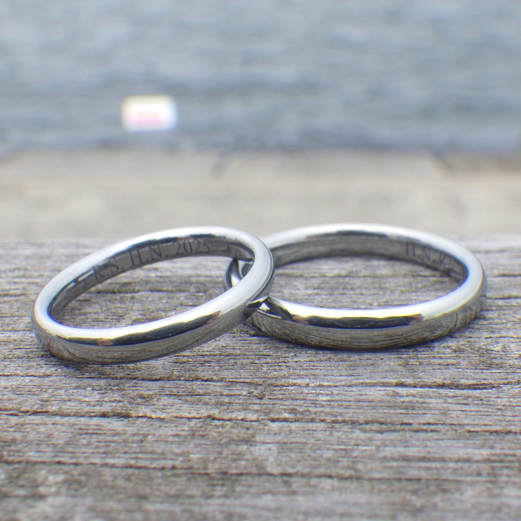 という、お問い合わせをいただきまして、ご注文いただいたハフニウムの結婚指輪です。