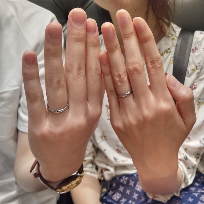 ”普段装飾品を身に付けないため、パートナーと自分が望む指輪の要件や仕様を言語化できていませんでした。一度、実物の指輪や素材等を見せて頂きながらご相談に乗って頂くことで、我々が指輪に求める要件を深掘りしたいと考えました。TOKYO DIAMONDさんで結婚指輪を作成した知人が、指輪の出来栄えと、金属アレルギーの心配がない指輪素材の両方に満足していたため。今後自分が指輪を検討することになった時は一度TOKYO DIAMONDさんに相談してみようとマークしていました。まだ検討段階であった我々に対して丁寧に相談に乗って下さり感謝しています。一回の打合せで指輪の要件を具体化することは難しいと考えていましたが、終わってみたら我々が希望する要件が固まっていました。打合せ後も急かすことなく引き続きこちらのペースで検討を継続させて頂き、メールベースで指輪作製に関する技術的な質問にご回答頂けたことも安心材料でした。”