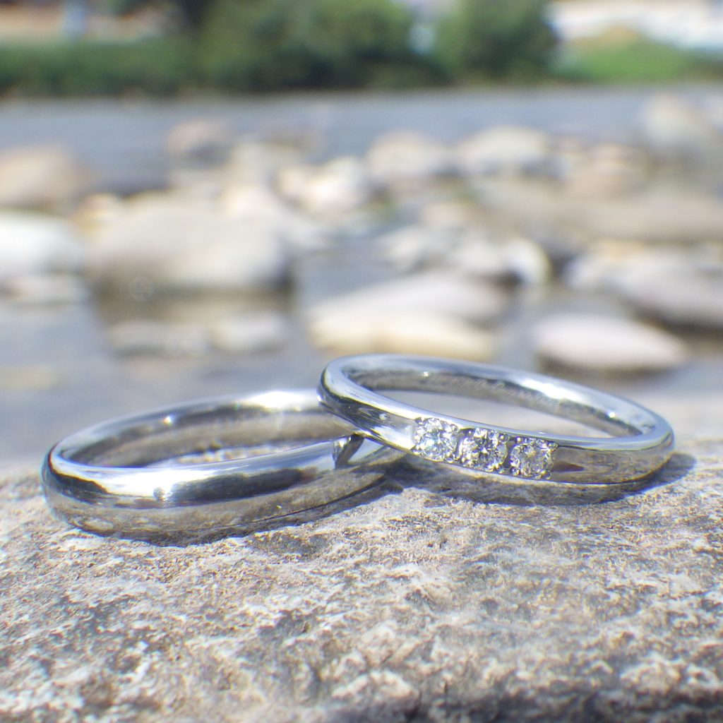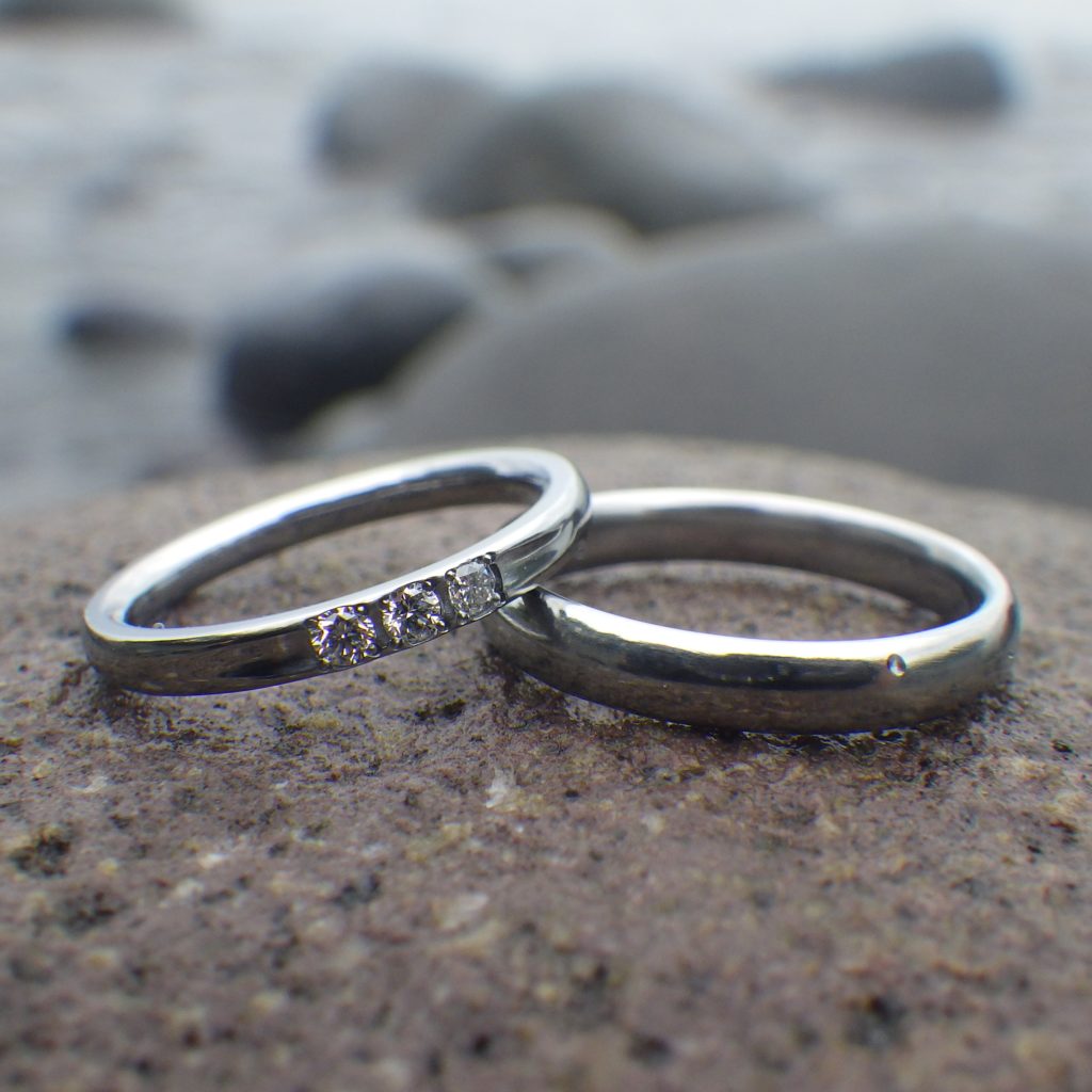 という、お電話でのお問い合わせをいただきまして、お作りさせていただいたハフニウムの結婚指輪です。