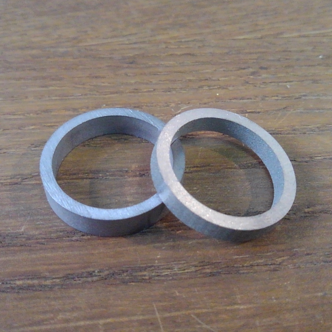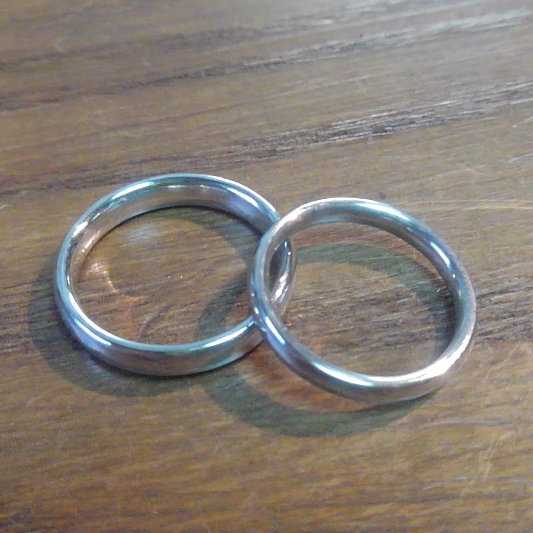 という、お電話でのお問い合わせをいただきまして、お作りさせていただいたハフニウムの結婚指輪です。